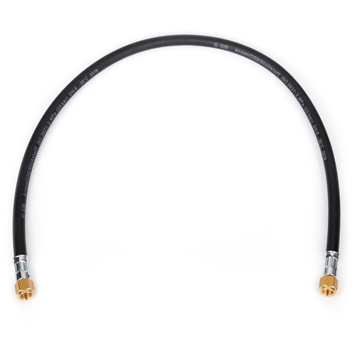 Schutzgasschlauch flexibel für Argon und CO2 mit Überwurfmuttern G 1/4" verpresst. Normkonform ISO 3821.